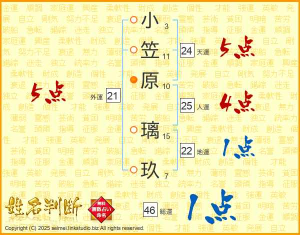 小笠原璃玖さんの総運は46画の1点!
