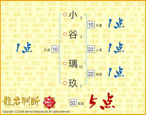 小谷璃玖さんの総運は32画の5点!