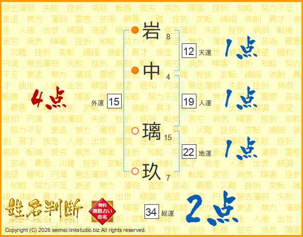 岩中璃玖さんの総運は34画の2点!