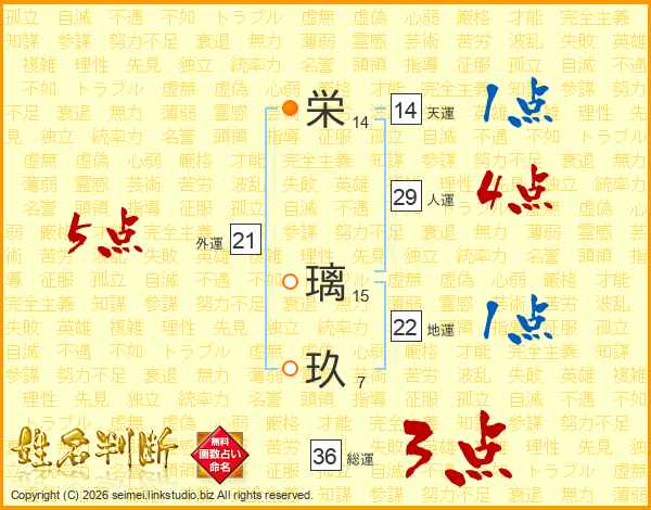 栄璃玖さんの総運は36画の3点!