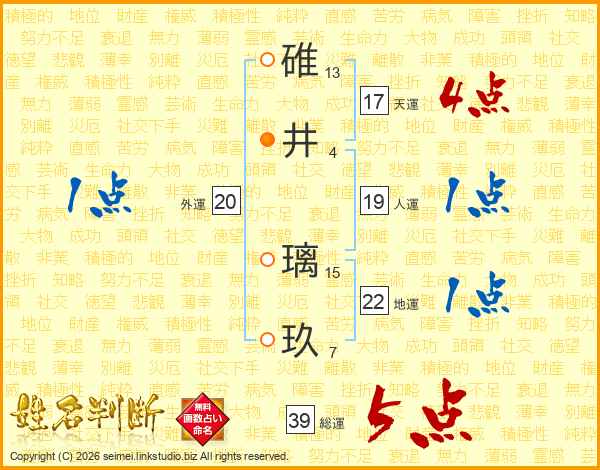 碓井璃玖さんの総運は39画の5点!