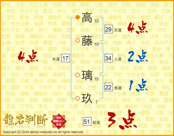 高藤璃玖さんの総運は51画の3点!