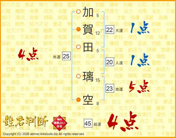 加賀田璃空さんの総運は45画の4点!