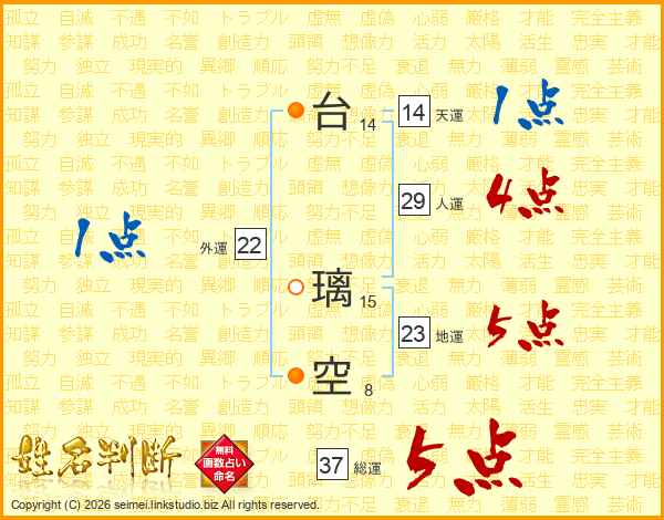 台璃空さんの総運は37画の5点!