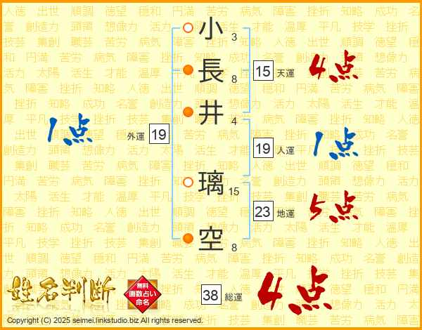 小(3画)長(8画)井(4画) 璃(15画)空(8画)