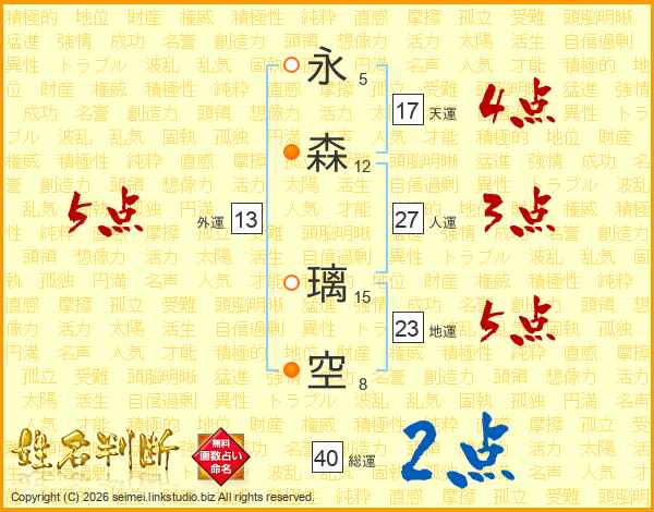 永森璃空さんの総運は40画の2点!