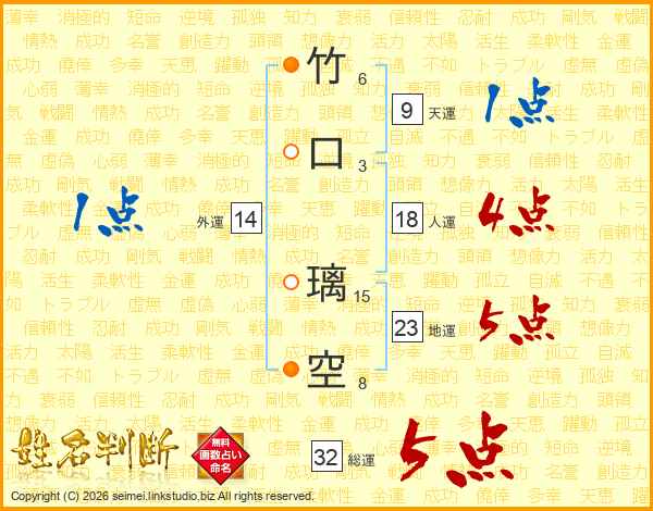 竹口璃空さんの総運は32画の5点!