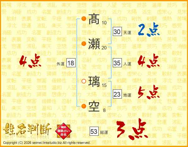 髙瀬璃空さんの総運は53画の3点!
