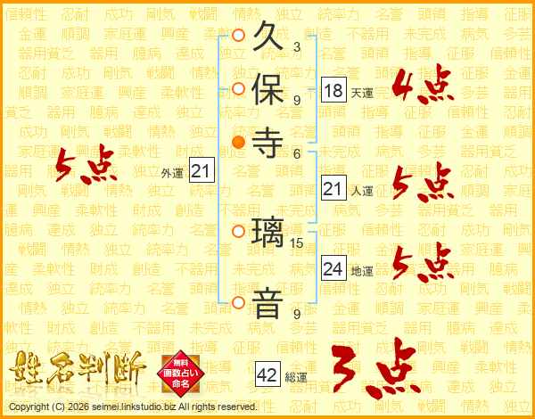 久保寺璃音さんの外運は21画の5点!