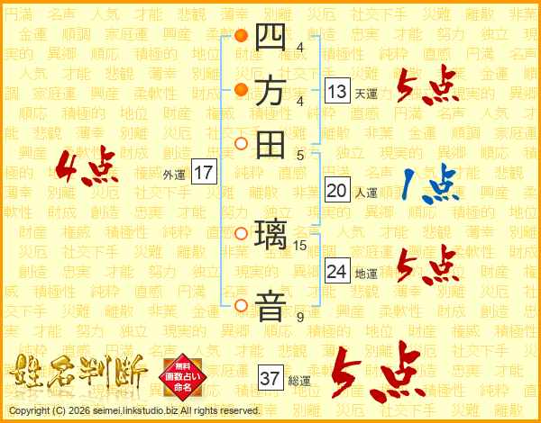 四方田璃音さんの総運は37画の5点!