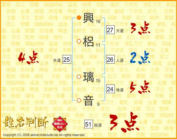 金運 順調 家庭運 興産 柔軟性 財成 創造