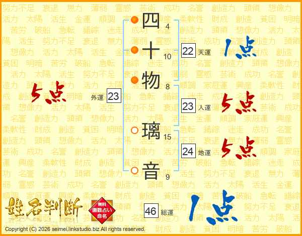 金運 順調 家庭運 興産 柔軟性 財成 創造