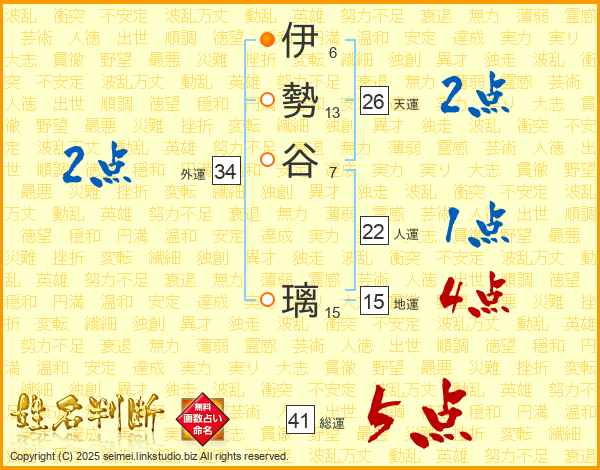 伊(6画)勢(13画)谷(7画) 璃(15画)