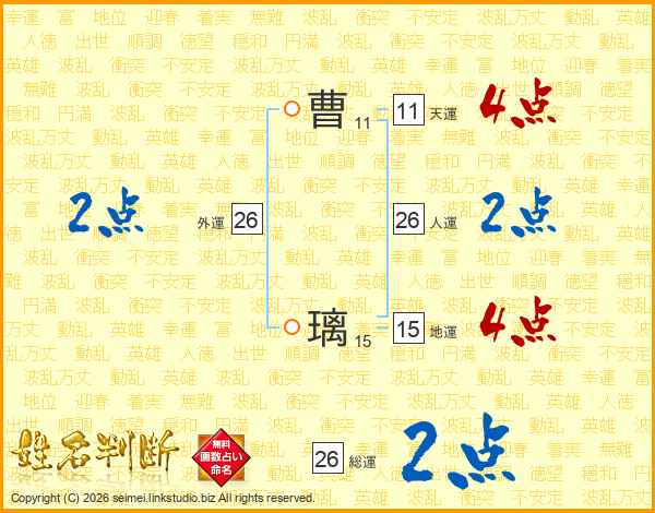 曹璃さんの総運は26画の2点