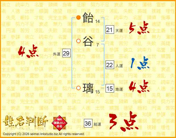 飴谷璃さんの天運は21画の5点!