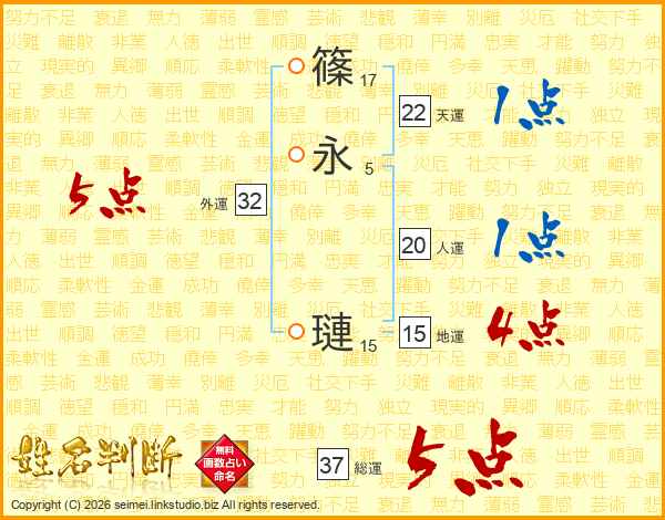 篠(17画)永(5画) 璉(15画)