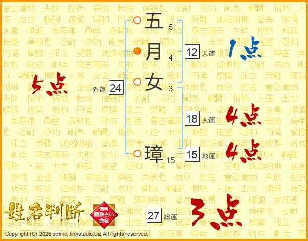 五月女璋さんの総運は27画の3点!