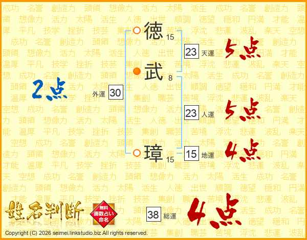 徳武璋さんの総運は38画の4点!