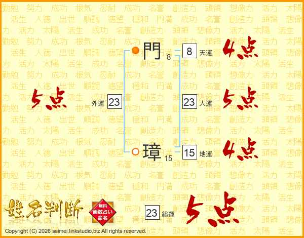 門璋さんの総運は23画の5点!