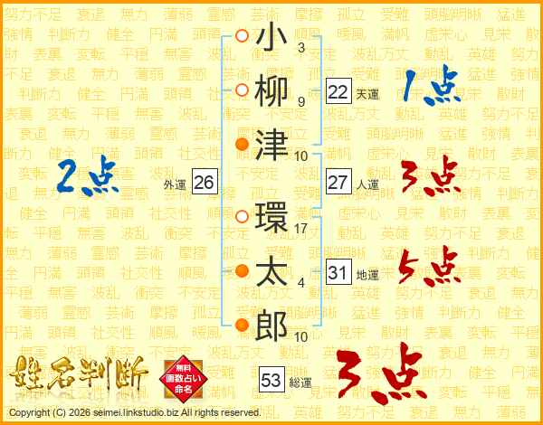 小柳津環太郎さんの総運は53画の3点!