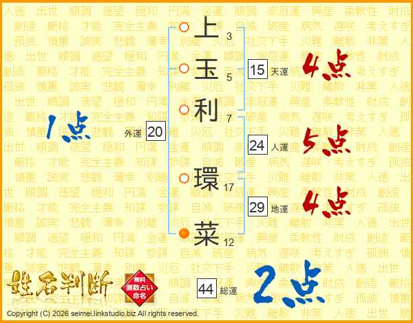 上玉利環菜さんの総運は44画の2点!