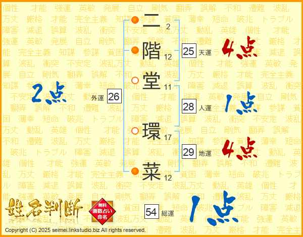 二階堂環菜さんの総運は54画の1点!
