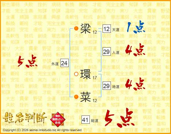 梁環菜さんの総運は41画の5点!