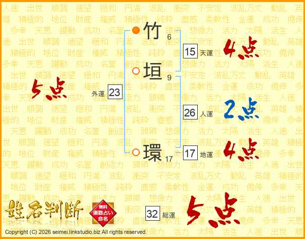 竹垣環さんの総運は32画の5点!