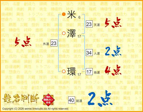 米(6画)澤(17画) 環(17画)