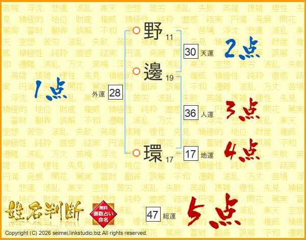 野邊環さんの総運は47画の5点!