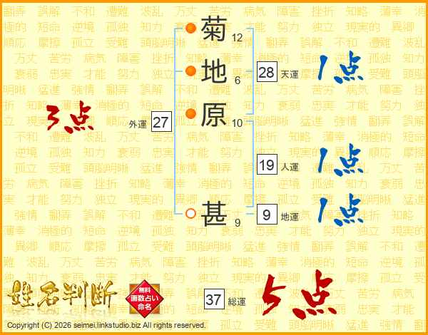 菊地原甚さんの総運は37画の5点!
