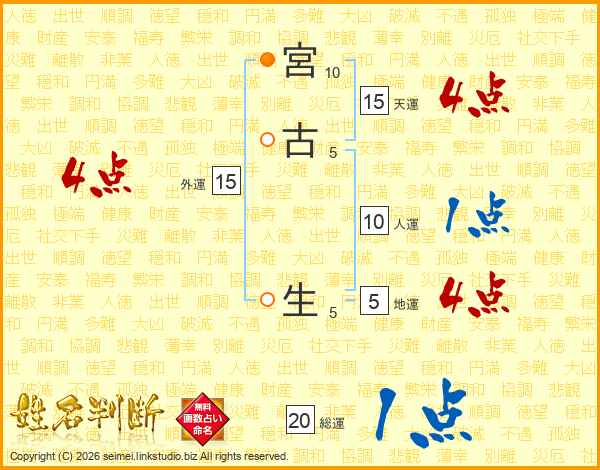 宮古生さんの総運は20画の1点!