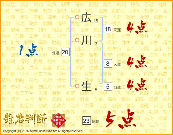 広川生さんの総運は23画の5点!