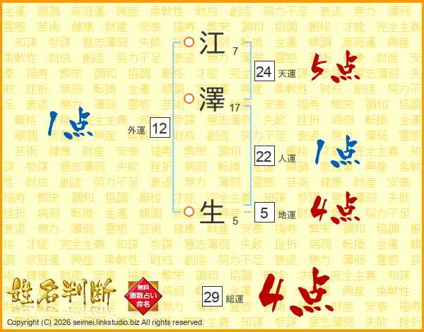 江澤生さんの総運は29画の4点!