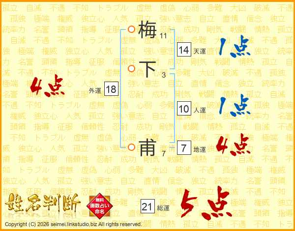 梅下甫さんの総運は21画の5点!