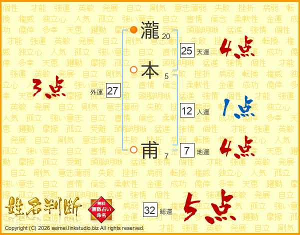 瀧本甫さんの総運は32画の5点!