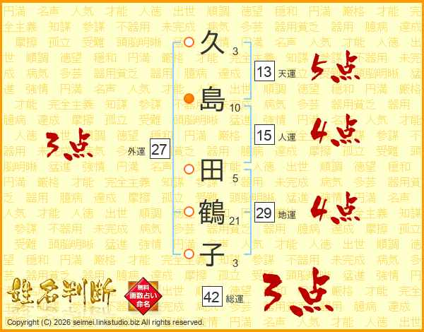 久島田鶴子さんの総運は42画の3点!