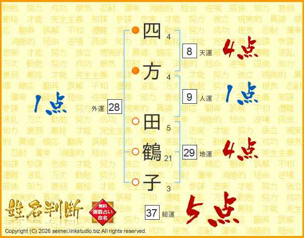 四(4画)方(4画) 田(5画)鶴(21画)子(3画)