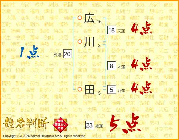 広川田さんの総運は23画の5点!