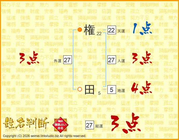 権田さんの天運は22画の1点!