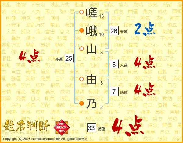 嵯峨山由乃さんの天運は26画の2点!