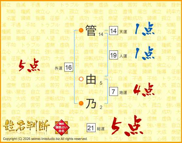管由乃さんの総運は21画の5点!