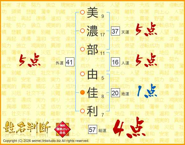 美濃部由佳利さんの総運は57画の4点!