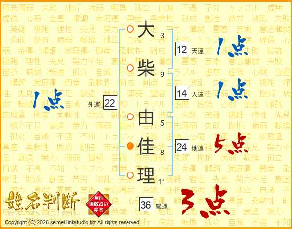 大(3画)柴(9画) 由(5画)佳(8画)理(11画)