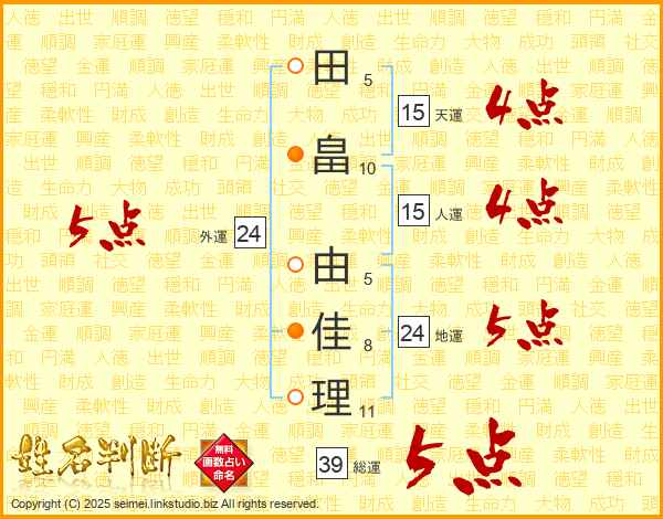 田畠由佳理さんの総運は39画の5点!
