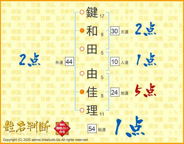 鍵和田由佳理さんの天運は30画の2点!