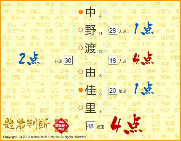 中野渡由佳里さんの総運は48画の4点!