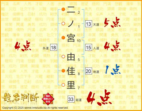 二ノ宮由佳里さんの外運は18画の4点!