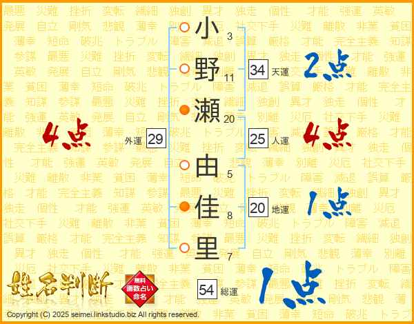 小野瀬由佳里さんの天運は34画の2点!