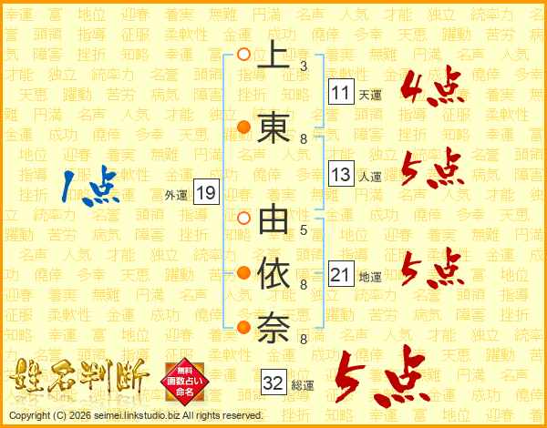 上東由依奈さんの総運は32画の5点!